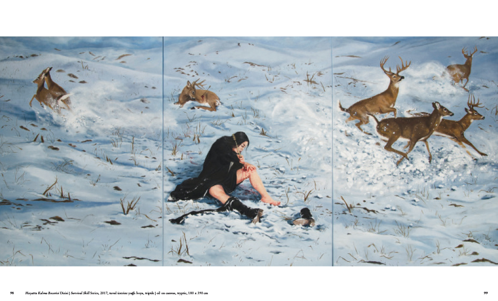 Mit der ersten Einzelausstellung in Deutschland ist in der GRIMMWELT Kassel das umfangreiche figurative Werk der türkischen Künstlerin Necla Rüzgar (*1972) zu entdecken, die in ihrer Heimat zu den bekanntesten zeitgenössischen Malerinnen ihrer Generation zählt. Die Begleitpublikation versammelt einen Querschnitt ausdrucksstarker malerischer und zeichnerischer Arbeiten, in denen Rüzgar immer wieder und häufig mit Rückgriff auf den Mythos die kulturellen und gesellschaftlichen Bedingungen des Frauseins in einer frauenfeindlichen Umgebung zur Diskussion stellt. Symbolisch aufgeladene und akribisch ausgeführte Szenen zeigen subtil-verstörende Konstellationen von Frauen, Männern und Tieren, scheinbar entrückt im Schlaf oder gewaltbereit als Täter und Opfer einer Tier- und Menschenjagd. Die vieldeutige Nähe von Frauen und Tieren nimmt Rüzgar auch in ihren jüngst während der Corona-Pandemie entstandenen konzentrierten Tuschezeichnungen auf: Hier gehen sie als elegante Doppelnaturen eine befreiende Verwandlung ein, aus der ein ambivalentes Wesen im Übergang entspringt, der Kopf einer Frau gebiert einen Fuchs, der Fuchs einen Pfau. Ergänzt wird die auf Deutsch, Türkisch und Englisch vorliegende Publikation von drei einführenden Essays zum Werk der Künstlerin, verfasst von der Kuratorin Kevser Güler, der Historikerin Christina Soose und dem Kunsthistoriker Peter Stohler.