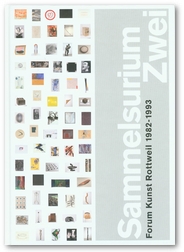 Früher nannte man so etwas Gruppendynamik. Tatsächlich führt der Band „Sammelsurium Zwei“ mitten in diese Zeit hinein. Die Jahre zwischen 1982 und 1993, die diese Publikation dokumentiert, waren für das Forum Kunst Rottweil eine aufregende Zeit. Geprägt von finanziellen Engpässen, starken Persön- lichkeiten, die durchaus auch mal aneinander geraten konnten und mutigen Entscheidungen, jüngere und unbequeme Künstler auszustellen. Bereits in den frühen 1980er Jahren waren im Forum Kunst Rottweil Markus Oehlen und Werner Büttner zu sehen, aber auch Martin Kippenberger, der für seine Ausstellung mit einem Foto warb, das ihn im Beuys-Filzanzug auf einer Säulenplastik Ernst Hausers zeigte, auf der er fröhlich ritt. Das Leben ist hart und ungerecht, so der Kommen- tar des Provokateurs. Und die Besucher des Forum Kunst Rottweil kauften, 1984 eine Holzplastik Erwin Wurms, 1987 eine Zeichnung von Leiko Ikemura, 1989 eine Stahlplastik von Robert Schad. Und so dokumentiert der Katalog nicht nur die Ausstel- lungsreihe Sammelsurium, die von Sammlern Bilder, Skulpturen und Grafiken zurücklieh, sie zieht auch Bilanz über die sehr erfolgreiche Kunstvermittlung des Forum Kunst Rottweil.