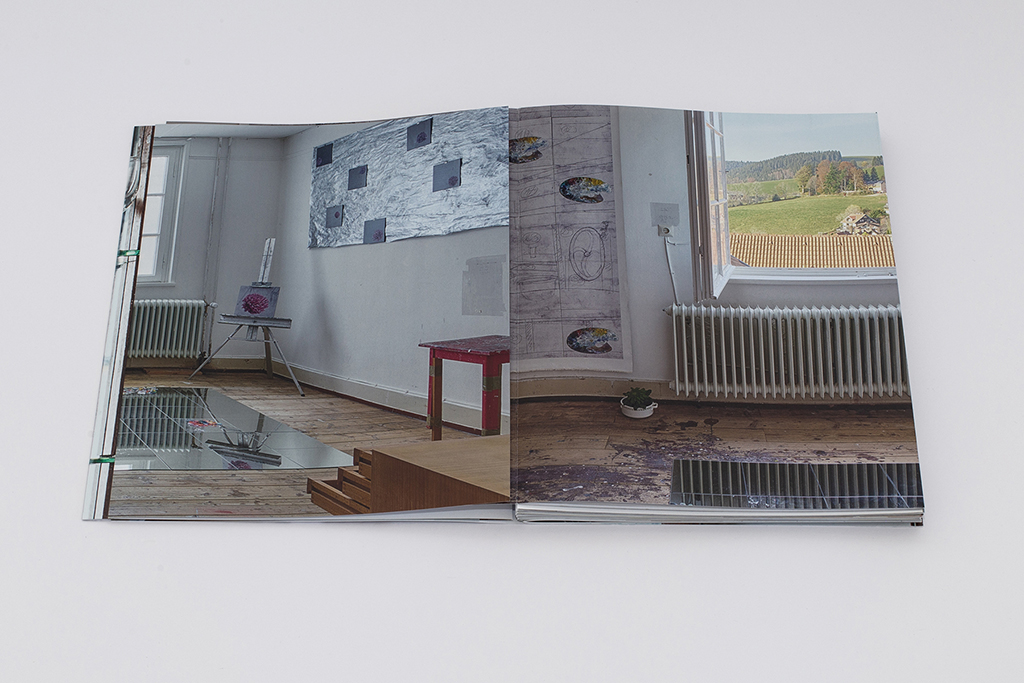 Die Freiburger Malerin Eva Rosenstiel setzt sich in ihren neuen in diesem Künstlerbuch versammelten Arbeiten mit dem Atelier als gegenständlicher, spiritueller und totaler Rückzugsort für die Entstehungsbedingungen von Kunst auseinander. Die im St. Märgener Elfenbeinturm entstandenen Bilder und Installationen nehmen die Spuren auf, die der Raum als Gehäuse aus Gemäuer, Inventar, verdichteter und stillgestellter Zeit, Licht und Ausblick bereithält und verdichten sie zum künstlerischen Arbeitsmaterial. Die Spuren dieses Elfenbeinturms, der bis vor einigen Jahren über Jahrzehnte hinweg das Atelier des Malers Peter Dreher (1932–2020) war, reflektiert Eva Rosenstiel beispielsweisein der malerischen Umsetzung einer im Haus gefundenen Palette des früheren Nutzers.Das Raster des charakteristischen Sprossenfensters tritt in Beziehung mit einem Puzzle aus Landschaftsbildern der Vorbewohner (Künstler) des Hauses, holt als Bodeninstallation aus Spiegelkacheln die Außenwelt in die Innenwelt, fokussiert mit Buttermilch geweißt die Versenkung in den Innenraum und auf die Dinge und reflektiert in geöffnetem Zustand als malerisches Bildsujet in Serie den Horizont der vor dem Fenster liegenden Schwarzwaldhügel. Eva Rosenstiels Künstlerbuch besteht aus zwei Teilen. Einem losen, in Leporellomanier ineinandergesteckten 120-seitigem Teil und einem Beilageheft, welches die Texte und einige Werkserien zeigt.Mit zwei umfangreichen, in das Werk Eva Rosenstiels und den Elfenbeinturm als Ort einführenden Essays der Autoren Dietrich Roeschmann und Dirk Teuber.