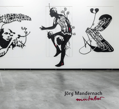 Frei nach Ludwig Wittgenstein ist Jörg Mandernach der Ansicht, dass man das, worüber man nicht sprechen kann, zeichnen müsse. Und der 1963 geborene Mandernach zeichnet viel. Seine Arbeiten, die mitunter auch direkt auf der Wand entstehen, gehen aus einer steten Verwandlung heraus. Nicht ohne Grund lautet der Titel dieses Katalogs, der anlässlich seiner Ausstellungen in Leonberg, Berlin und Bern erscheint, „Mutabor“. „Ich werde verwandelt worden sein“ ist der Zauberspruch aus Wilhelm Hauffs Kunstmärchen „Kalif Storch“ und ermöglicht demjenigen, der ihn spricht, ein Tier zu werden. Der Zauber von Jörg Mandernachs Zeichnungen liegt in der Verbindung von bislang Unverbundenem: Mischwesen, seltsame Objekte, Texte, die mehr grafisch als semantisch eingesetzt werden. Vor allem jedoch ist Jörg Mandernach, der in Stuttgart die Kunstakademie besucht hat, ein Jäger und Sammler, dessen genuine künstlerische Ausdrucksform die Collage und Montage ist. Viele seiner Werke haben biografische Bezüge, man findet Anspielungen auf Kunstwerke und Musik, die er schätzt. Es ist ein Labyrinth des Verbergens und des Verborgenen, in das der Künstler den Betrachter führt. In diesem Sinne ist es auch ein Abbild der Welt.