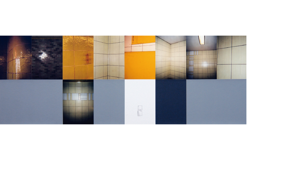 Die Publikation präsentiert die 18 Miniaturen einer Großstadt, die als Collagen-Zyklus den Abschluss eines Langzeitprojekts bilden, das die gebürtige Britin Sandra Eades mit Fotos von Kachelwänden in Berliner U-Bahnstationen begann. Von hier hat die Künstlerin die vorgegebenen geometrischen Formate der realistischen Kachelraster übernommen und um zeichnerische und malerische Eingriffe erweitert. Die rechteckigen Bildfelder ergeben zusammengestellt das Gesamtbild. Als Kombination aus monochrom bemalten und bezeichneten Farbfeldern und fotografierten Fliesenbildern erinnert das Bildganze einerseits selbst an Gefliestes, andererseits verfängt das Auge im Kontrast unterschiedlich belebter oder auch versiegelter Oberflächen. Die Details und Eigenheiten von Struktur und Form verbleiben im jeweiligen Medium der Zeichnung, Malerei und Fotografie, während das verbindende Element der Gesamtkonzeption in der Farbe liegt.