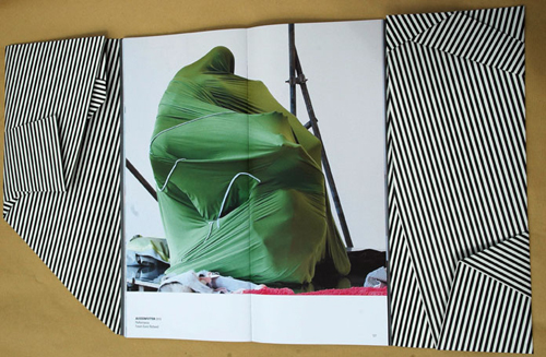Die Publikation vermittelt schon beim ersten Blick, beim ersten Anfassen den Eindruck, dass es sich hier um etwas ganz Besonderes handelt. Format, Muster und die raffinierte Faltung des Einbands sind nicht nur Hingucker, sondern stehen symbolisch für die Korrespondenz zwischen Form und Inhalt. Dabei bilden die Parallelen zwischen Stoff und Papier sowie die Aufhebung der Grenzen zwischen Kunst und Design Themenbereiche, die sich durch die Arbeit der Künstlerin und durch den Katalog ziehen wie der rote Faden in der überraschend unorthodoxen Fadenbindung des Katalogs selbst.