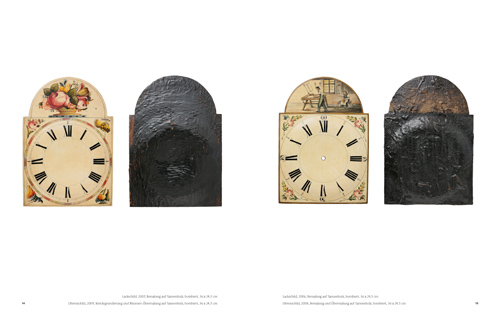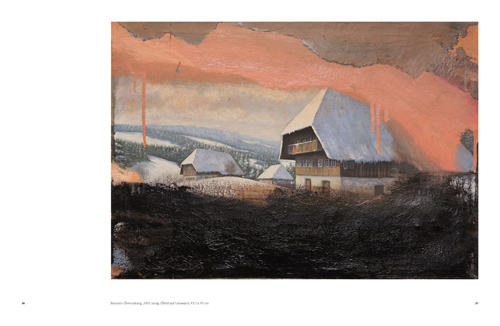 Entsprechend viel Raum nehmen Darstellungen von Landschaften und Schwarzwaldhöfen in seinem Werk ein. Manche von ihnen gibt es längst nicht mehr, in Albi Maiers Bildern haben sie eine Art Zuflucht gefunden. Neben dieser figurativen Malerei verfolgt Albi Maier seit einigen Jahren eine Serie von Übermalungen. Er übermalt dabei nicht nur Lackschilder von Schwarzwalduhren, sondern auch Landschaftsszenen. Meist verwendet er dabei schwarze Farbe, manchmal auch Bitumen, selten hellere Töne. Wenn er seine Vorlagen übermalt, scheint er sie in Wahrheit zu versiegeln, damit spätere Archäologen ausgraben können, was verschwunden schien. Für ihn ist es eine Möglichkeit, zur Ruhe zu kommen und die Stille einer Landschaft auszudrücken. Und insofern bieten seine Arbeiten auch dem Betrachter ein Stück Heimat.
