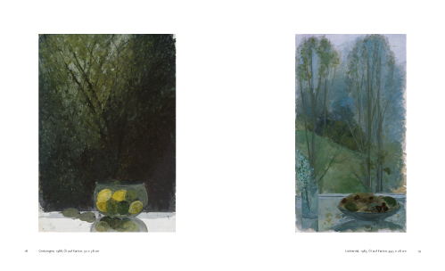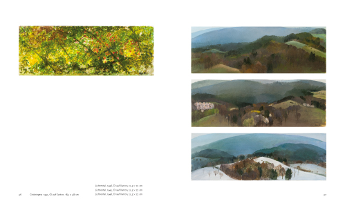 25 Jahre nach der letzten Ausstellung von Brigitta Weber und nachdem alle Publikationen zum Werk der 1996 verstorbenen Künstlerin nahezu vergriffen sind, war es erneut Zeit für einen Katalog. Anders als die von Anna Wesle und Jean-Christophe Ammann kuratierte Ausstellung, die sich sowohl dem Werk von Brigitta Weber als auch dem ihres Sohnes Johannes Hüppi widmet, konzentriert sich diese Publikation auf die Bildwelt Brigitta Webers. Gerade einmal zwei Werke von Johannes Hüppi sind abgebildet. Es sind bezeichnenderweise Variationen zum Motiv Der Tod und das Mädchen. In Hüppis Version vergießt einmal der Tod Tränen, das andere Mal das dunkelhaarige Mädchen, das er aus dem Leben reißt. Johannes Hüppi wurde 1965 in eine Künstlerfamilie geboren. Der Vater ist der Schweizer Künstler Alfonso Hüppi, seine Frau Brigitta Weber nahm 1972 ihre künstlerische Tätigkeit wieder auf. Brigitta Webers Bildern haftet die Regelmäßigkeit von Exerzitien an. Sie zeigen den Blick aus ihrem Fenster in Lichtental und ihrem Geburtsort Grötzingen auf den vor ihr liegenden Wald. Die Bäume sind meist in gedämpftes Licht getaucht, die blauen und grünen Farben sowie die Ocker-, Sand- und Grautöne haben etwas Mildes an sich. Oft übernimmt Brigitta Weber das Hochformat des Fensterausschnittes und manchmal führt sie dem Betrachter in Stillleben und Interieurszenen vor, wie ihre eigene Perspektive verortet ist. Die Kronen der Bäume waren beim Blick hinaus immer auf Augenhöhe.