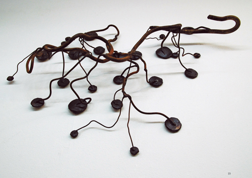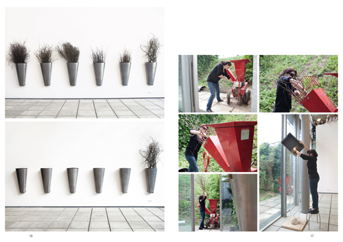 Mag sein, dass Manuela Tirlers biografische Landschaften ihren Horizont erweitert haben. Die Absolventin der Staatlichen Akademie der Bildenden Künste Stuttgart, die bei Werner Pokorny, Micha Ullman, Markus Ambach und Rainer Ganahl studierte, wuchs in den USA und im Enzkreis auf. Bezüge zu den jeweiligen Kulturlandschaften lassen sich in den Arbeiten der jungen Künstlerin finden. Sei es, dass sie bei ihrer Debütausstellung in der Ausstellungshalle der Staatlichen Akademie der Bildenden Künste Stuttgart für ihre Installation "Instant Brushwood" Schnittgut erst in stählernen Kiepen aufbewahrte, dann häckselte und schliefllich in Acrylsäulen schüttete. Sei es, dass sie in ihrer Serie "Tumbleweeds" diese Steppenläufer aus Armierungseisen durch Bagger nachformt und so dem künstlichen Material eine natürliche Gestalt verleiht. Das Werk von Manuela Tirler stehe, so Petra von Olschowski in diesem Band, im "Spannungsfeld zwischen Kunst und Natur". Beide – häufig so antagonistisch wahrgenommene Bereiche – werden wechselseitig umgedeutet und umgeformt.