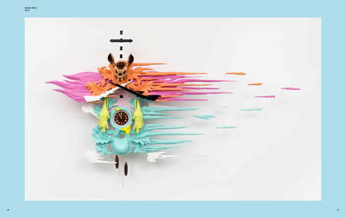 Ob der Street Art-Künstler Stefan Strumbel sich hat träumen lassen, seine Ideen einmal in Bronze gegossen zu sehen? Ein größerer Gegensatz zur flüchtigen Kunst der Straße ist wohl kaum denkbar. Doch tatsächlich haben sich die Arbeiten Strumbels radikal gewandelt, seit er in den 1990er Jahren in seiner Geburtsstadt Offenburg seine ersten Graffitis sprühte. Jetzt kommen sie, um zu bleiben. Längst finden sich seine poppigen, subversiven Kuckucksuhren in prominenten Privatsammlungen und statt Anzeigen gibt es mittlerweile offizielle Anfragen. Sei es für die Innengestaltung der katholischen Kirche in Goldscheuer, die Oper Stuttgart oder zum 300-jährigen Bestehen der Stadt Karlsruhe. Das Haus Baden bat ihn um ein Denkmal für Karl III. Wilhelm von Baden-Durlach. Heimat ist bei Stefan Strumbel Pop-Kultur mit lokaler Provenienz und Pop-Kultur lokaler Alltag. Da ist die Einzelausstellung, die die Städtische Galerie Offenburg dem wohl bekanntesten Künstler der Stadt widmet, nur konsequent. Die Publikation reflektiert diese Werkentwicklung und zeigt den Entstehungsprozess wichtiger und aktueller Arbeiten, aber auch, wie sich ein Künstler neu erfindet. Die Straße als das natürliche Terrain eines Street Art-Künstlers hat dennoch Eingang in den Katalog gefunden, indem Stefan Strumbel fotografische Augenblicke von unterwegs zeigt.