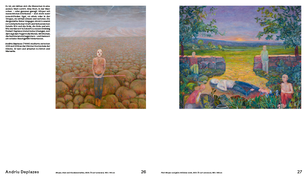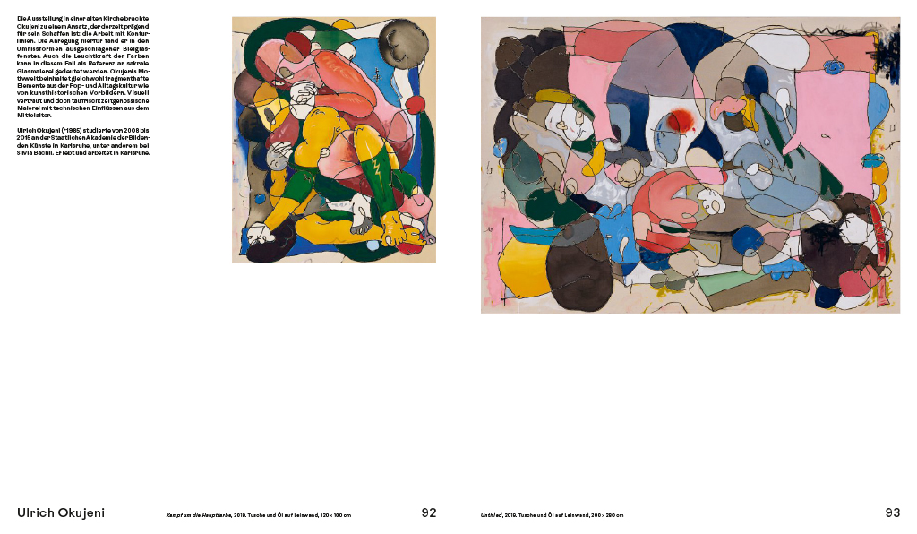 «Ohne Titel – Junge Malerei aus Süddeutschland und der Deutschschweiz» feiert das altehrwürdige und doch quicklebendige und facettenreiche Medium in seiner ganzen grenzüberschreitenden Bandbreite. Die vom Kunstmuseum Singen (D) und dem Museum zu Allerheiligen Schaffhausen (CH) auf den Weg gebrachte Doppelausstellung und Publikation versammelt 57 spannende und junge Positionen zeitgenössischer Malerei. Dabei haben sich die Kuratoren Christoph Bauer und Julian Denzler die offene Wahrnehmungshaltung des beliebten Werktitels «Ohne Titel» zu eigen gemacht. Die Auswahl bereits etablierter und noch zu entdeckender Kunstschaffender erlaubt einen Überblick, weist Tendenzen auf und versteht sich als Querschnitt einer neuen Generation, die in ihrer künstlerischen Praxis erstmals den durch digitale Medien hervorgerufenen Paradigmenwechsel abbildet. So erweitern nicht wenige der gezeigten Arbeiten das Verständnis von Malerei um aktuelle Seherfahrungen wie Immersion oder Simulation. Dass «die Wirklichkeit der Malerei heute alles ist, was visuell der Fall ist» (Julian Denzler), lässt sich mit der vorliegenden Publikation entdecken und vertiefen.