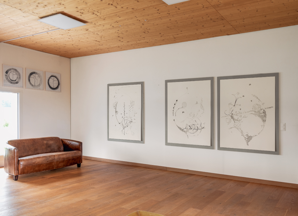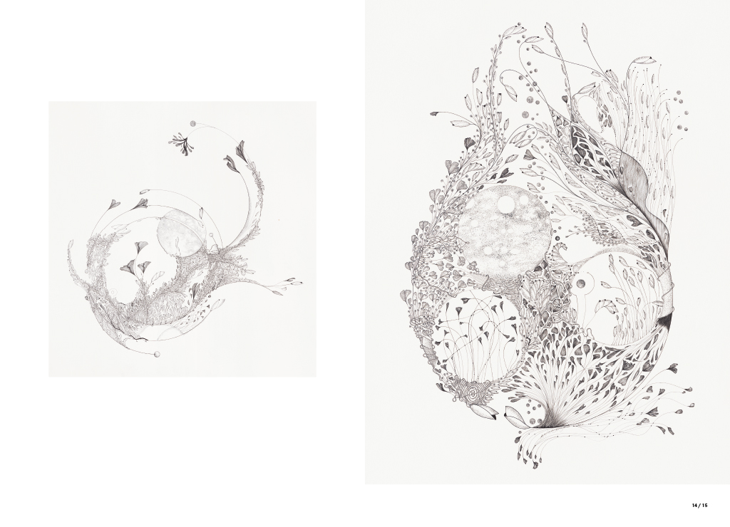 Der Schweizer Künstler Reto Bärtschi (*1971) nimmt in seinen neuen, in der Kabinettausstellung des Museum Franz Gertsch gezeigten Papierarbeiten und Fotoporträts das menschliche Beziehungsgefüge unter die Lupe. Mit hauchdünnen schwarzen Tuschestiften entwirft er ohne Vorzeichnung und unter dem Brennglas zarte florale Mikrolandschaften aus Blättern, Blüten und Samen, die sich zu planetaren Oberflächen verdichten und Kosmologien ganz eigener Art hervorbringen. Bärtschi interessiert der symbolische, auf zwischenmenschliche Verhältnisse übertragbare Gehalt in der Darstellung von Planetenkonstellationen: der Ausgleich, der durch Anziehung und Abstoßung in dauernder Bewegung zustande kommt. In den mit grafischen, vegetabilen oder organischen Motiven überzeichneten Porträtfotografien, die wie bei der digitalen Gesichtserkennung auf der Mittelachse über das Porträt gelegt sind, erprobt er die Umdeutung des verschlüsselt biometrischen Verfahrens in ein freischwebend zeichnerisches und zeichenhaftes, dessen Sinn nur dem Künstler selbst bekannt ist. Mit einem Essay der Kuratoren Anna Wesle und Mathias Kobel.