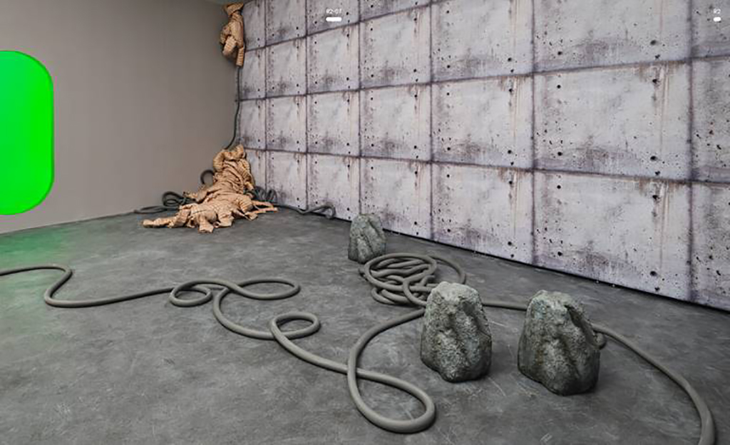 Verwerfungen, Abwehrreaktionen, Dystopie, Verwüstung: Die Berliner Künstlerin Emma Adler hat im Rahmen ihres letztjährigen Stipendiums der ZF-Kunststiftung im Friedrichshafener Zeppelin Museums die Auswirkungen und Mechanismenvon Verschwörungstheorien und Fake News unter der Dunstglocke von Pandemie und Populismus untersucht.Der Ausstellungstitel SIMULATOR [SIC!]NESS spielt auf die durch Täuschung der Sinnesorgane hervorgerufene Übelkeit an, wie sie durch den Aufenthalt in Simulatoren oder virtuellen Realitäten entstehen kann. An die Ästhetik von Videospielen anknüpfend simuliert und dekonstruiert Adler in multimedialen Rauminstallationen Versatzstücke und Szenarien aus dem Milieu der Verschwörungs-Influencer, Webvideoproduzenten und Internet-Warriors: Pseudogeröllwüsten flackern im grünen Licht unter dem Wummern eines Herzschlags, ein dysfunktionaler Gaming Chair ist auf einem Sandhaufen gestrandet, Betonfelder aus immer gleichen Modulen imitieren den Copy-Paste-Modus eines Computerspiels. Dabei entfaltet Adler kein Gegennarrativ, sondern fragt nach der Zuverlässigkeit von Wahrnehmung als Erkenntnisinstrument in einer digitalisierten Welt. Mit einem begleitenden Essay (deutsch/englisch) der Kuratorin Melina Mercer.