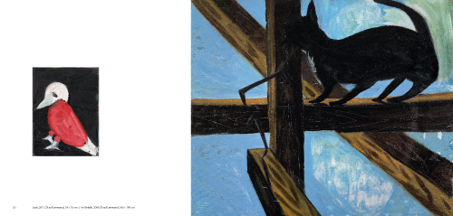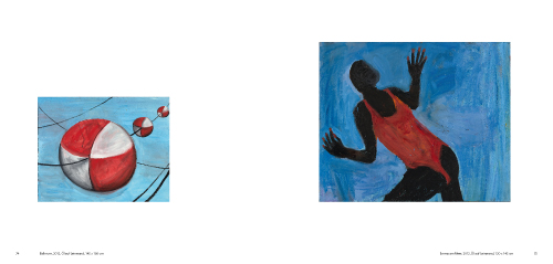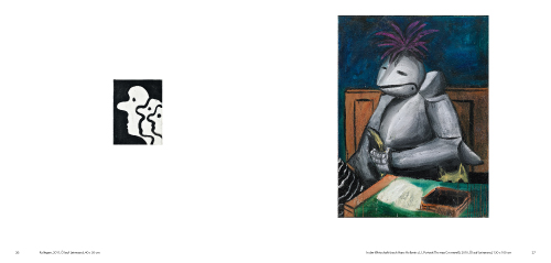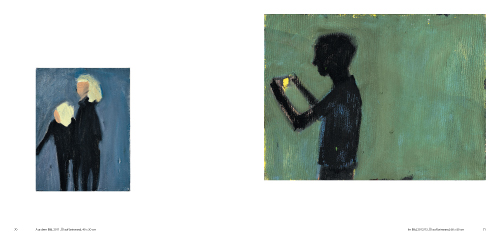 Der mittlerweile im Markgräflerland lebende Bosshart hat sich davon nicht beirren lassen und einen ganz eigenen Stil ausgeprägt. Klaus Gallwitz bezeichnet die Bilder Bossharts in dieser Publikation, die anlässlich seiner Ausstellung im Kunstverein Grafschaft Bentheim erscheint, als malerischen Slapstick. Und pointiert wirken die Arbeiten Bossharts wirklich, die dieser oft in dichten Installationen hängt. Meist beschränkt sich der Maler auf ein Motiv, das er vor einfarbigem, oft vor blauem Hintergrund inszeniert. „Ich versuche das Reich der Malerei zu entdecken, in dem ich’s beschränke“, sagt Peter Bosshart. Das schließt die Lust am Fabulieren und Geschichtenerzählen, am hintergründig Alltäglichen nicht aus.