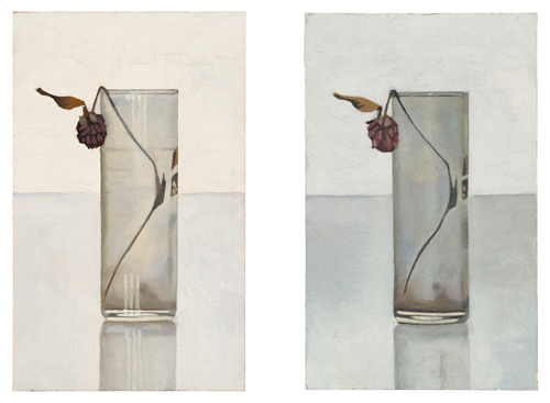 „Wenn ich etwas bereue“, so zitierte Peter Dreher einmal Auguste Rodin, „dann dies, dass ich nicht mein ganzes Leben immer ein und dasselbe Motiv gemalt habe“. So ganz ist dies nicht einmal Peter Dreher gelungen, doch die Konzentration auf wenige Motive in seinem Werk ist bemerkenswert. Bekannt geworden ist Dreher mit jenem einfachen Birnenmostglas aus dem Kaiserstuhl, das er seit den 1970er Jahren regelmäßig malt. Um die 5.000 Leinwände umfasst diese Serie „Tag um Tag, guter Tag“. Dass dieses Wasserglas von einem weiteren flankiert wurde, zeigt sich nun. Bereits Mitte der 1970er Jahre begann Peter Dreher eine einzelne Kleeblume im Glas zu malen, nun hat er die Serie vervollständigt, die in diesem Band erstmals vollständig publiziert wird. Es ist eine Art Porträt, von einem Interview und einem Text begleitet, das zugleich die Charakteristiken von Peter Drehers OEuvre hervorhebt. Bislang 80 Bilder sind von dieser allmählich verblühenden Blüte entstanden. So viele Malkartons, wie Peter Dreher an Jahren zählt. Der Klee, der auf den ersten Bildern von purpurner Farbe ist, dann immer brauner wird, während das Wasser im Glas allmählich verdunstet, ist ein Memento Mori, wie es Drehers einzelnes Glas nicht sein wollte. Im Gespräch mit dem Kurator Hans Ulrich Obrist in diesem Band widersetzt sich Peter Dreher jeglicher Forderung nach Neuheit und Abwechslung.„Man muss nicht das Sujet wechseln, um die Liebe zur Malerei zu beweisen“, ist sich Peter Dreher sicher. Hier kann man es studieren: das Ereignis Ereignislosigkeit.