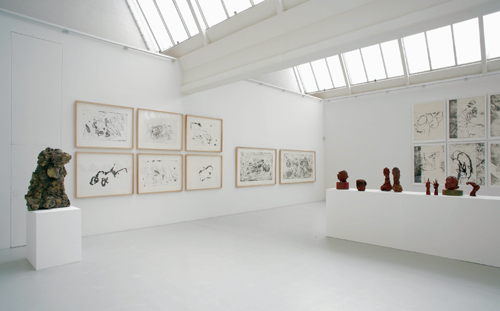 Das Arbeiten in Zyklen ist für Markus Daum keine rein technische Angelegenheit. Im Zyklus löst sich für Daum der Kreislauf von Werden und Vergehen ein, mit dem sich der Künstler seit Jahrzehnten befasst. Anschaulich wird dies in seiner Auseinandersetzung mit dem menschlichen Körper, den er sowohl bildhauerisch als auch grafisch darstellt. Gut 400 Blätter umfasst sein grafisches Werk, der erste Radierungszyklus entstand bereits gegen Ende seines Studiums, das er zuerst an der Akademie in Stuttgart bei Alfred Hrdlicka und dann in Berlin bei Rolf Szymanski absolvierte. Seitdem ist die Radierung ein notwendiges Gegenstück zu seiner bildhauerischen Arbeit. Wie die Bildhauerei verlangt auch die Radierung ein sukzessives Arbeiten, das sich über viele einzelne Schritte allmählich entwickelt. Daum beendet diesen Prozess selbst, indem er auf seiner eigenen Presse die Radierungen druckt. Markus Daum arbeitet sich an seinen Themen und Motiven ab, bis sie sich für ihn erschöpft haben. Doch das kann dauern. Der Zyklus „Im nebenher von allem“ besteht aus 63 Einzelarbeiten. Trotz der geschlossenen Struktur des Zyklus interessiert Markus Daum das Fragmentarische, die Andeutung. Der Betrachter wird eingebunden in den Prozess des Vervollständigens, liest selbst die Spuren der Zeit, die der Künstler festgehalten hat und ergänzt sie, hält sie am Leben.