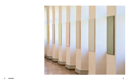 „Barocke Räume sind Inszenierungen“, sagt Arno Zahlauer. Er muss es wissen, schließlich ist er als Direktor des Geistlichen Zentrums der Erzdiözese Freiburg in St. Peter (Südschwarzwald) bestens mit der Barockarchitektur der Klosteranlage vertraut. Auch zeitgenössische Kunst neigt zu Inszenierungen. Mutig war es dennoch, Gegenwartskunst und die alte Benediktiner Abtei St. Peter zusammenzubringen. Der Freiburger Künstler Robert Eugler hatte 2016 die Möglichkeit, sich in St. Peter für mehrere Monate auf einen besonderen Dialog einzulassen. Eugler, der 1958 im Allgäu geboren wurde und erst Bildhauerei, dann Malerei und Fotografie studiert hat, ist ein monochromer Maler. Seine Werke entstehen in langsamen Prozessen, für die es wesentlich ist, dass der Künstler die Farbe mit Pigmenten und Eiöl selbst herstellt. Das Ergebnis ist eine besonders trockene Farbe, die er so auf die Leinwand oder die Baumwolle aufträgt, dass die Oberfläche keine subjektive Handschrift erkennen lässt. Räume und ihre jeweiligen Lichtverhältnisse verändern diese Bilder auf eine besondere Weise. Robert Eugler hat seine Bilder an die Stelle von Porträts gehängt, in Nischen, Treppenhäuser, Säle und eine Kapelle. Sie schaffen besondere Stimmungen und Schwingungen, die auf ihre Weise zur Stille des Ortes beitragen. Erweitert wird die Dokumentation dieser Inszenierung durch das „Beletage Ensemble“, mit dem Robert Eugler den Empfangsraum des Regierungspräsidiums Freiburg im Basler Hof neu gestaltet hat.