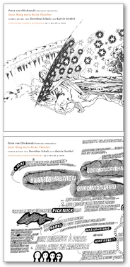 Sowohl für Dorothea Schulz als auch für Katrin Ströbel ist die Zeichnung ein Transitraum zwischen Wort und Bild. Während die eine zeichnet, was sie sieht, zeichnet die andere, was sie hört. Dass sich die beiden in diesem Band vorgestellten Stuttgarter Künstlerinnen vordringlich mit der Zeichnung befassen, ist kein Zufall. Die Städtische Galerie Offenburg, die von Juli bis September eine gemeinsame Ausstellung von Dorothea Schulz und Katrin Ströbel zeigt, steht im Jahr 2010 unter dem Primat der Zeichnung. Jede einzelne Ausstellung befasst sich mit Aspekten der Zeichnung, also auch die Gastkuratorenreihe „proudly presents“, die in diesem Jahr Petra von Olschowski übernommen hat.