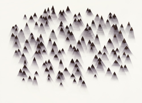 Das Paradoxon des Haufens, auch Sorites-Paradoxie genannt, ist seit der Antike bekannt. Es benennt das Phänomen, dass vage Ansammlungen von Elementen nicht klar definiert werden können. Macht das 99. Element einen Haufen aus oder erst das 100.? Und wenn ein Haufen kein Haufen ist, was ist es dann? Künstlerinnen und Künstlern dürfte diese Problematik nicht fremd sein. Es gibt schließlich auch keine eindeutige Definition dafür, wann ein Bild fertig ist. Insbesondere dann nicht, wenn es wie bei den Werken von Andrea Heller gleichermaßen durch amorphe und geometrische Formen, durch abstrakte Gebilde und organische Wucherungen charakterisiert ist. Es ist also kein Zufall, dass die 1975 geborene Künstlerin, die in Zürich und Hamburg studiert hat, sich ausgerechnet mit der Paradoxie des Haufens befasst. Der Katalog, der ihre Ausstellung im Museum Franz Gertsch begleitet, setzt den Fokus auf neuere Papierarbeiten der Bielerin sowie skulpturale Objekte aus Glas und aktuelle Raumansichten. Andrea Hellers Werke wachsen, so beschreibt die Kunsthistorikerin und Kuratorin Anna Wesle in ihrem einführenden Text den Arbeitsprozess, aus einer Keimzelle heraus und beruhen auf dem Prinzip der Wiederholung. Der Blick des Betrachters wandert über große und kleine Strukturen und Variationen und lässt den Haufen so zu einem Haufen werden.