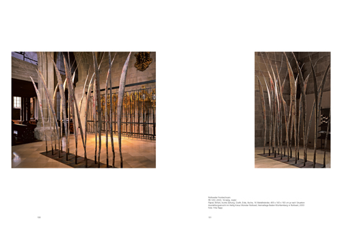 Die Materialien Papier, Zweige, Grafit, Erde und Asche, mit denen der 1936 geborene, in Rottweil beheimatete Josef Bücheler arbeitet, erinnern an die Arte povera, die Formen, die er daraus schafft an Organismen und an Architektur. Wie Schilde, die zugleich auch Bildkörper sind, spannen sich in seinen Werken Papierhäute über Weidenruten. Bücheler bearbeitet diese Papiere mit Asche, Sand und Schlamm und übermalt sie. In seinen Zeichnungen jedoch geht er in die dritte Dimension, indem er mehrere Lagen Büttenpapier übereinander legt. Die konsequente Reduktion, die seine verschiedenen Werkgruppen auszeichnet, ist kein Zufall. So war es ein Aufenthalt in Bangladesh, der Josef Bücheler mit Weide und Papier experimentieren ließ, da ihm sein bis dahin bevorzugtes Material dort nicht zur Verfügung stand. Immer ist es etwas Archaisches, das diese Werke charakterisiert, sei es, dass sie im Ausstellungsraum, in der freien Natur oder im Sakralraum zu sehen sind. Diese Publikation stellt nun Josef Büchelers Objekte, Bäume, Zeichnungen und Installationen in einer umfangreichen Monografie vor.