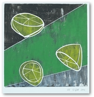 Zitronen auf Grün I, 2014 Holzschnitt auf Bütten, 32 x 32 cm Auflage: 8 (verschiedene Farbvarianten) von der Künstlerin nummeriert und signiert350,00 EUR / 420,00 SFR